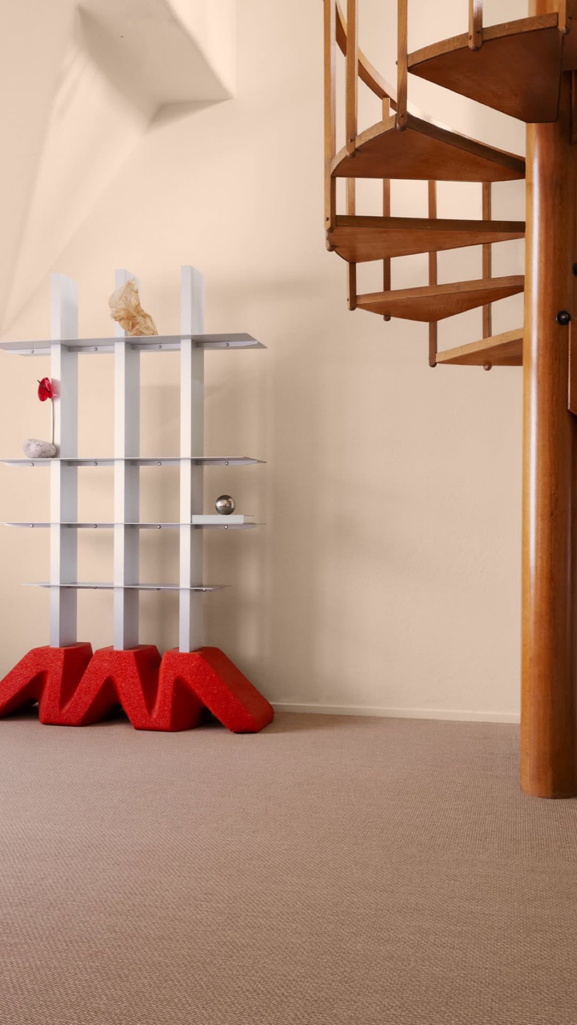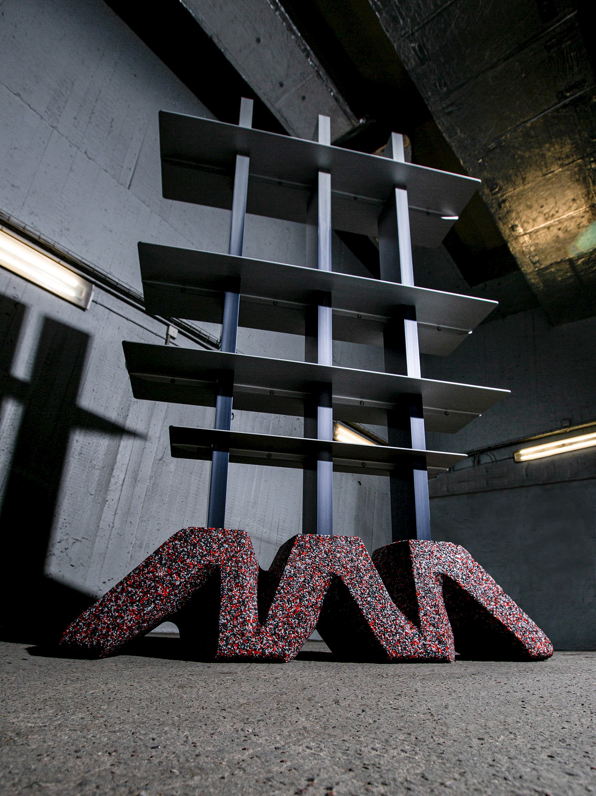 DIO is the result of an exploration into sneaker aesthetics, looking at the shapes, materials, and subcultures that define sneaker design. The bold and expressive language of sneakers informed the shelf’s sense of volume, color, and material, translating those qualities into a piece of furniture intended to bring character into a personal interior.