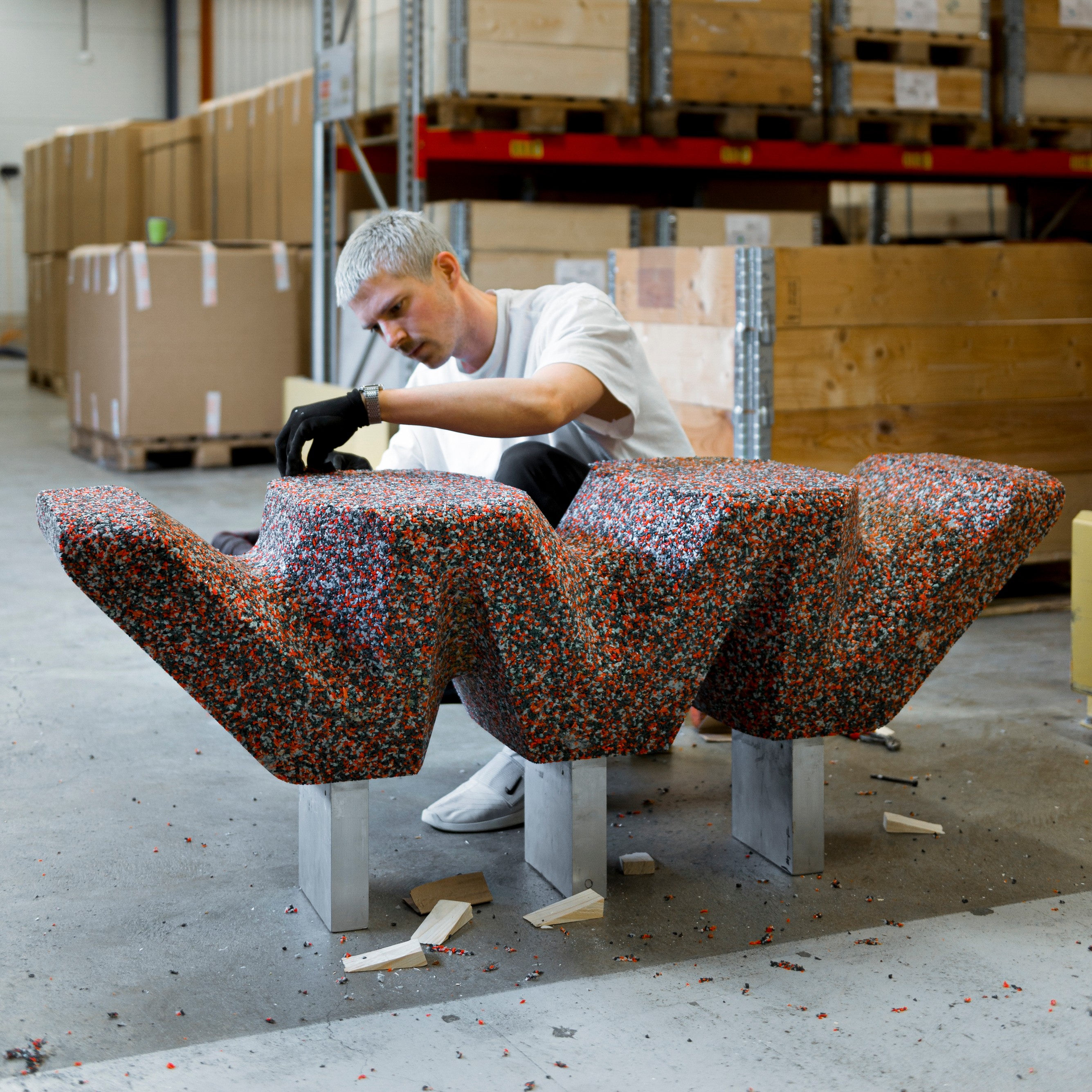 The project also explores the use of recycled rubber granulate, inspired by the growing practice of incorporating waste material into sneaker soles. By casting complex geometries and deliberately exposing the raw granulate, the material becomes both structure and visual statement.